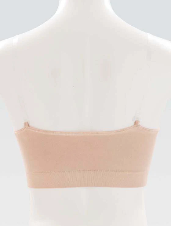 With a fuller shape to accommodate a larger bust and a 4-way stretch, this clear-strap sports bra for gymnastics is double-lined for maximum coverage and provides the support and comfort you need to stay confident. The revolutionary technology in this seamless sports bra reduces fabric bulk under your leotard or uniform for a smoother look.Â
